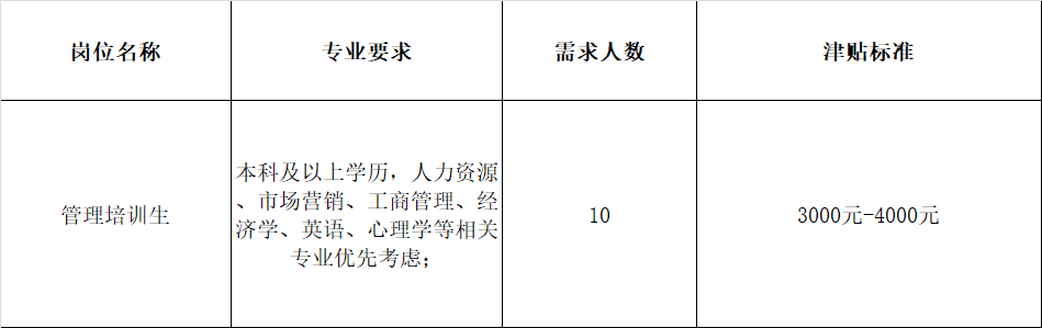 1、2022年毕业生,男女不限,本科及以上学历,人力资源、市场营销、工商管理、经济学、英语、心理学等相关专业优先考虑;